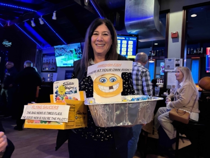 Debbie (Civetti) Close gave out Flying Saucers - "The bad news is time flies - the good news is you're the pilot!"